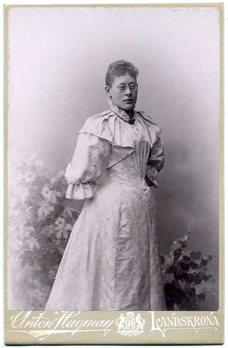 Porträtt av en 24-årig kvinna med glasögon.