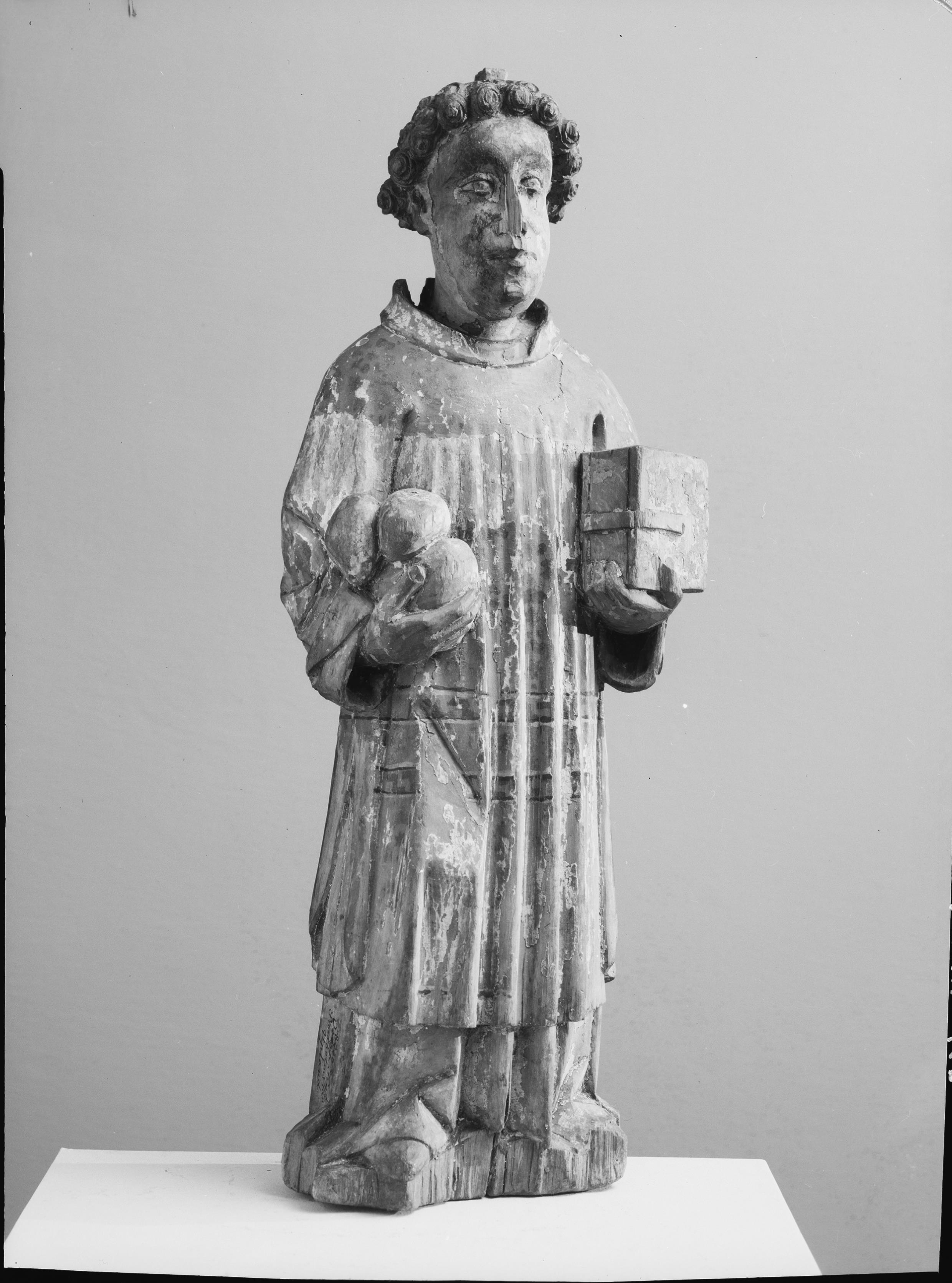 Skulptur, föreställande Sankt Stefan, ek, omkring 1500.