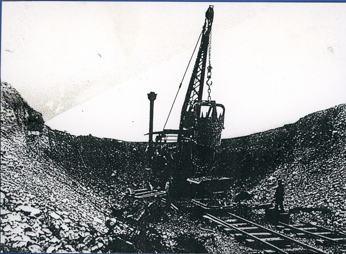 Grustaget på Limön, 1900-1905, med 10 tons grävningsmaskin.