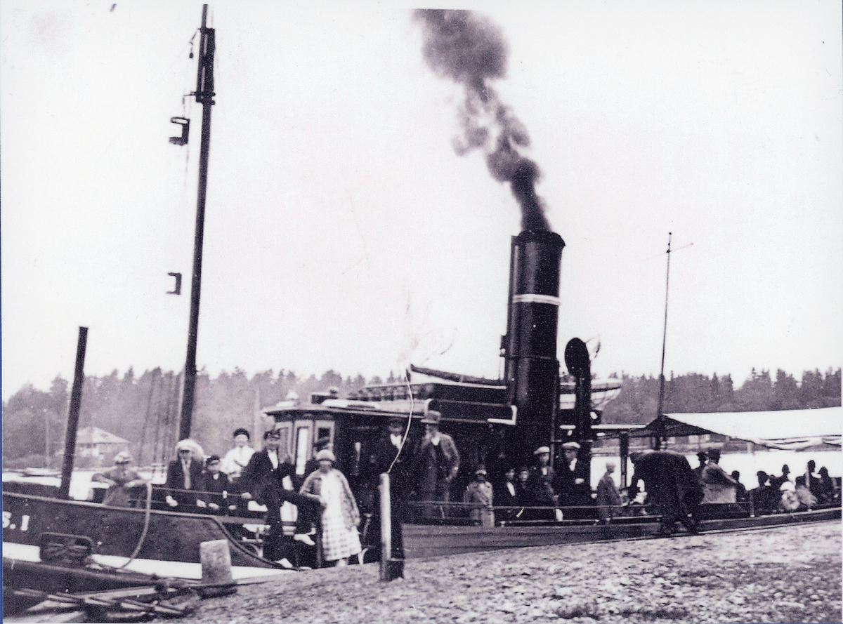 Ångbåten "Korsnäs I:an" vid Kastbryggan med många passagerare ombord.