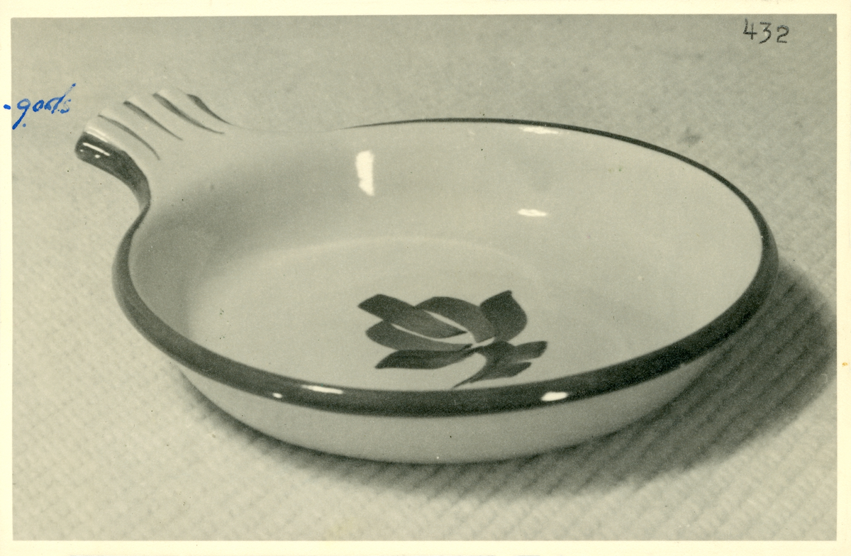 Hushållsgods från Bo Fajans. formgivare Allan Ebeling, tidigt 1900-tal. Skål 1867. Dekor H.