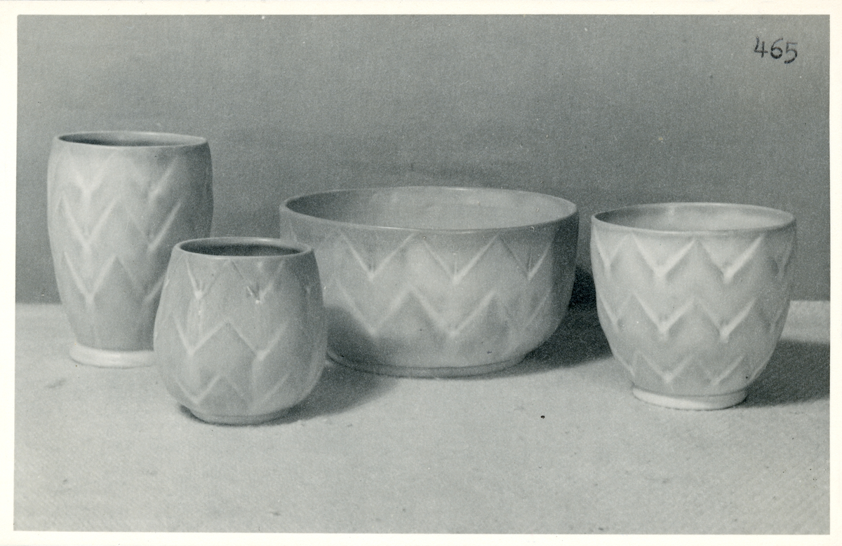 Vaser och skål från Bo Fajans, formgivare Eva Jancke-Björk, 1900-talets mitt. Nippon glasyr.