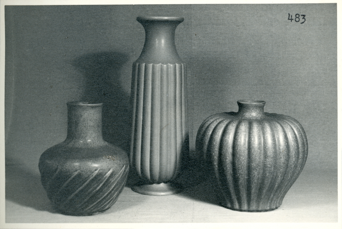 Vaser och urna från Bo Fajans, formgivare Ewald Dahlskog, 1900-talets mitt.