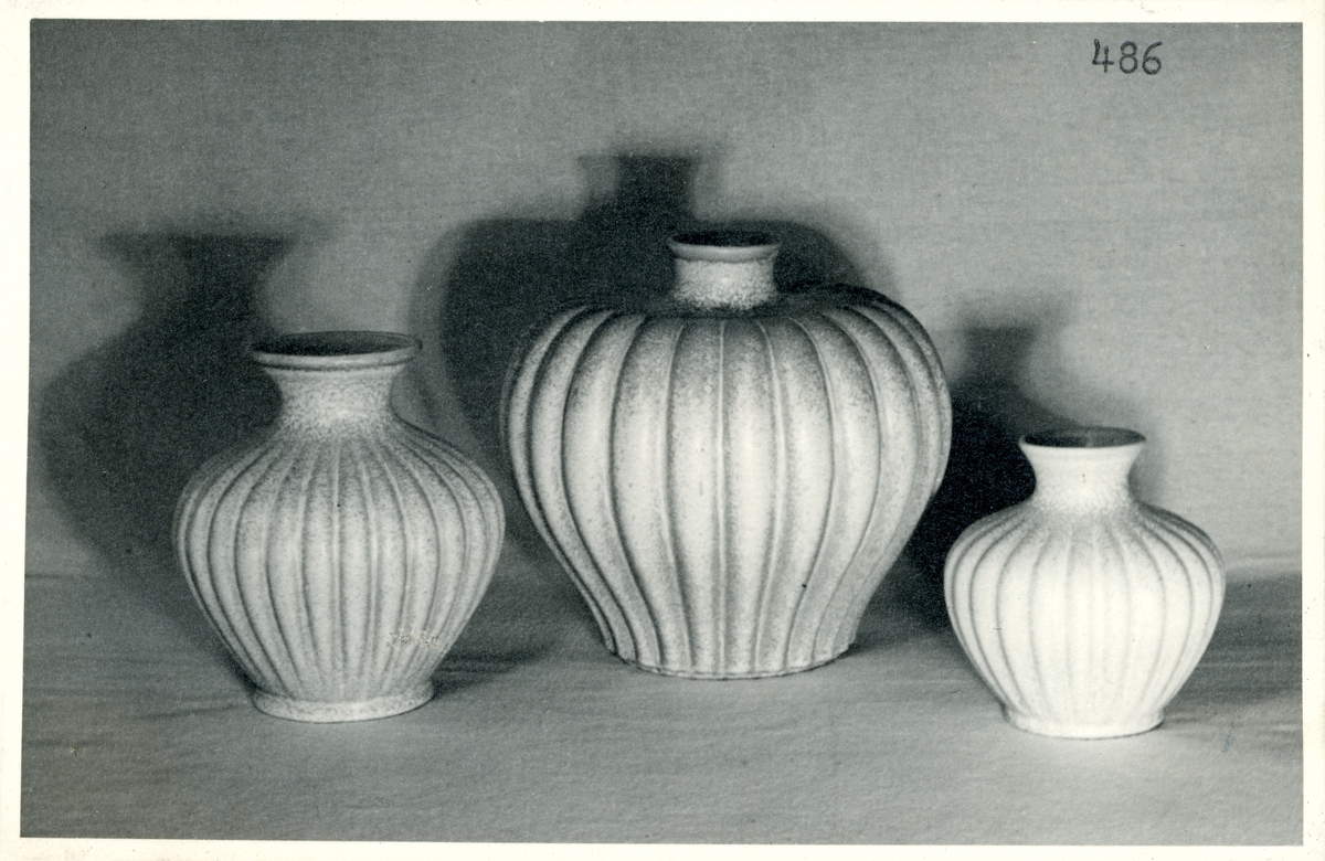 Titel: Vaser och en urna från Bo Fajans, formgivare Ewald Dahlskog, 1900-talets mitt.