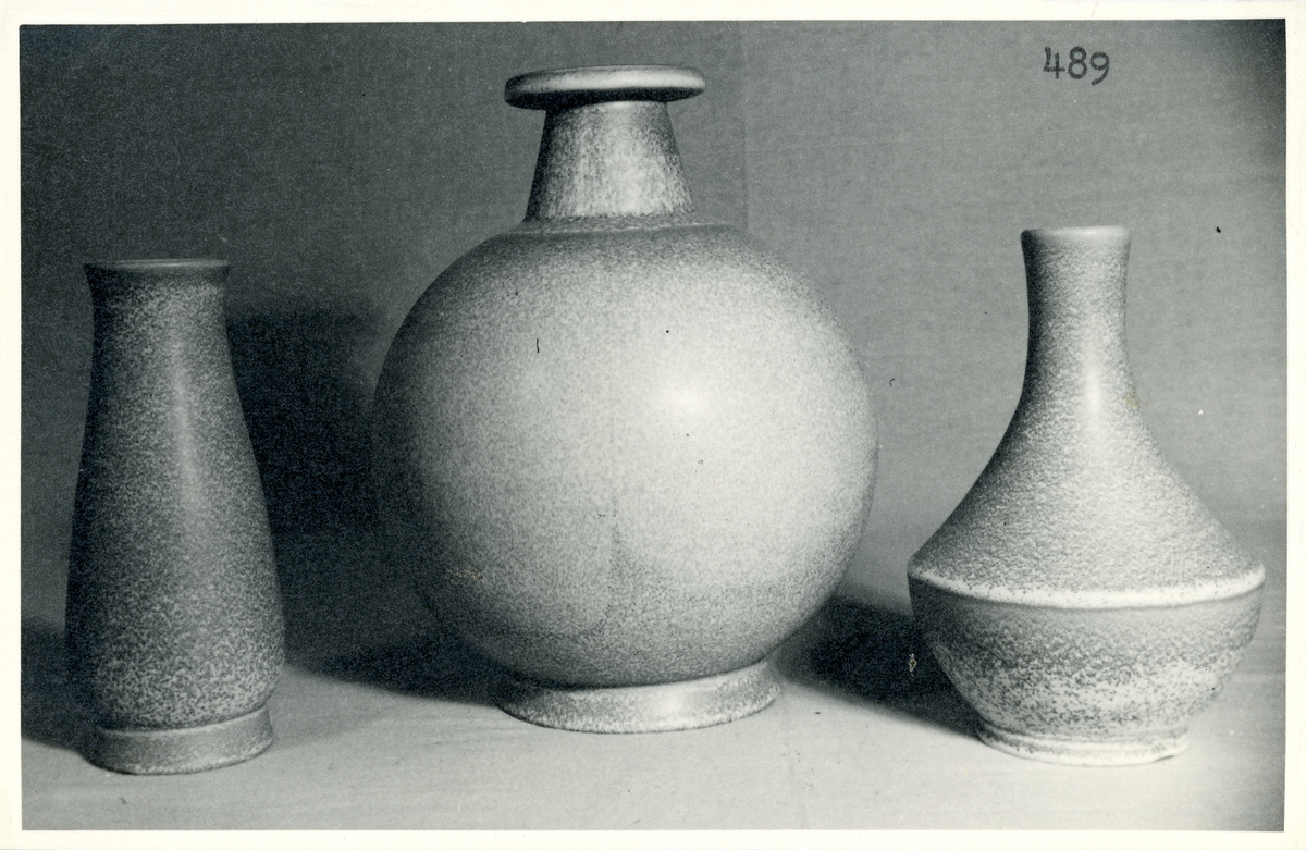 Vaser och en urna från Bo Fajans, formgivare Ewald Dahlskog, 1900-talets mitt.