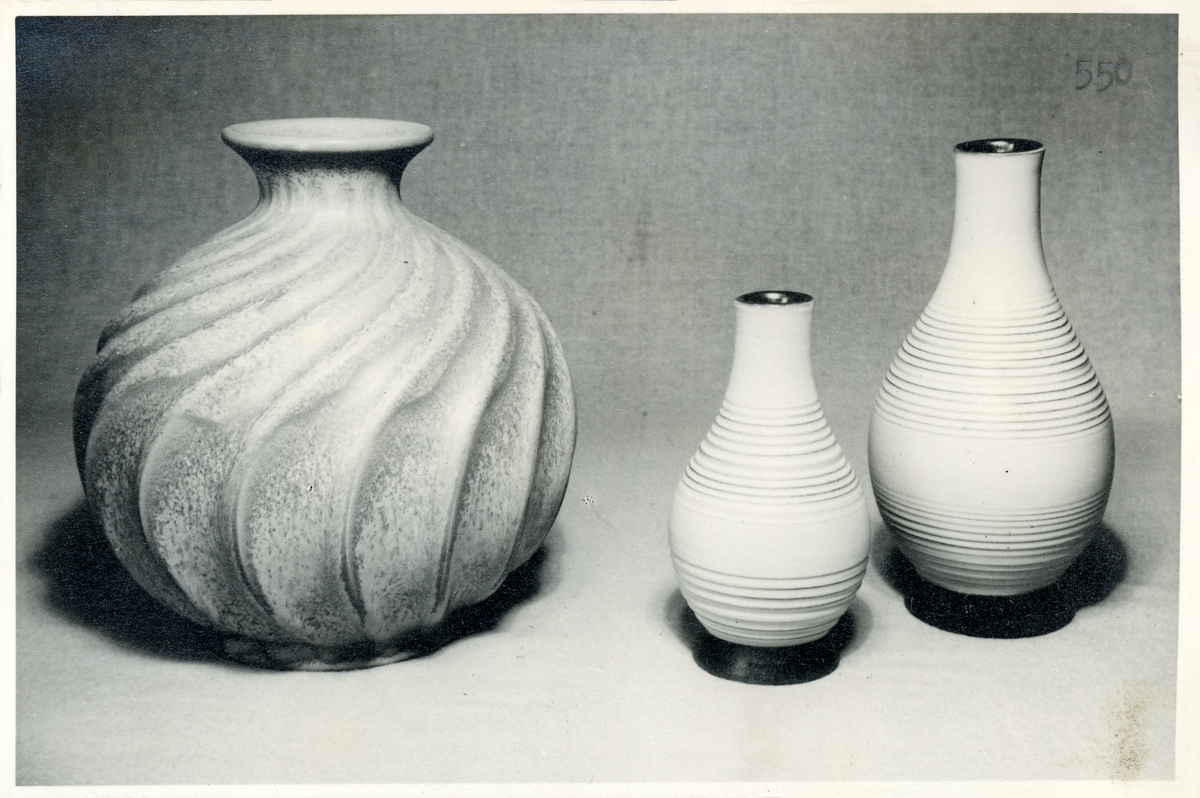Vaser från Bo Fajans, bland annat formgivna av Ewald Dahlskog, 1900-talets mitt.