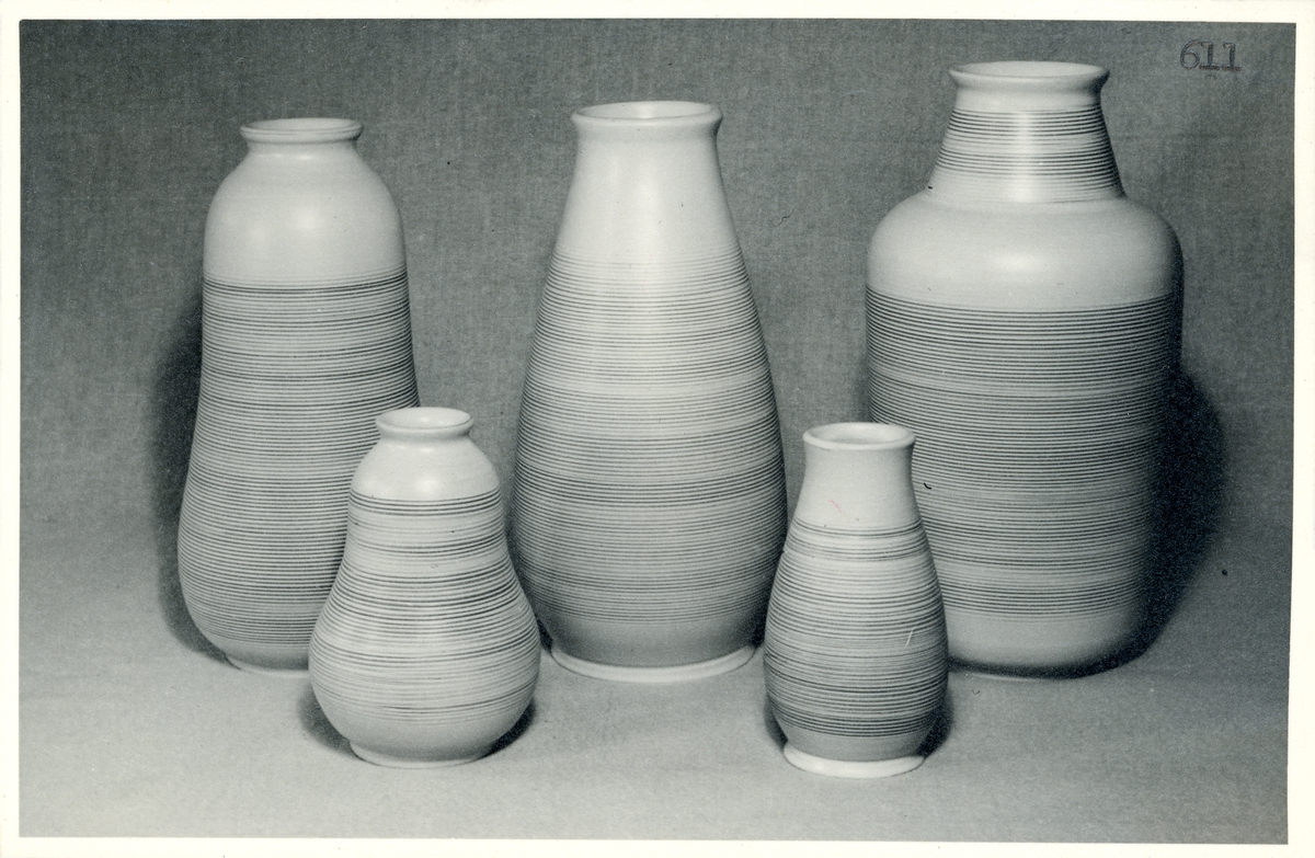Vaser D194/2-1, D195/2-1 och D206 från Bo Fajans, formgivare Ewald Dahlskog, 1900-talets mitt.