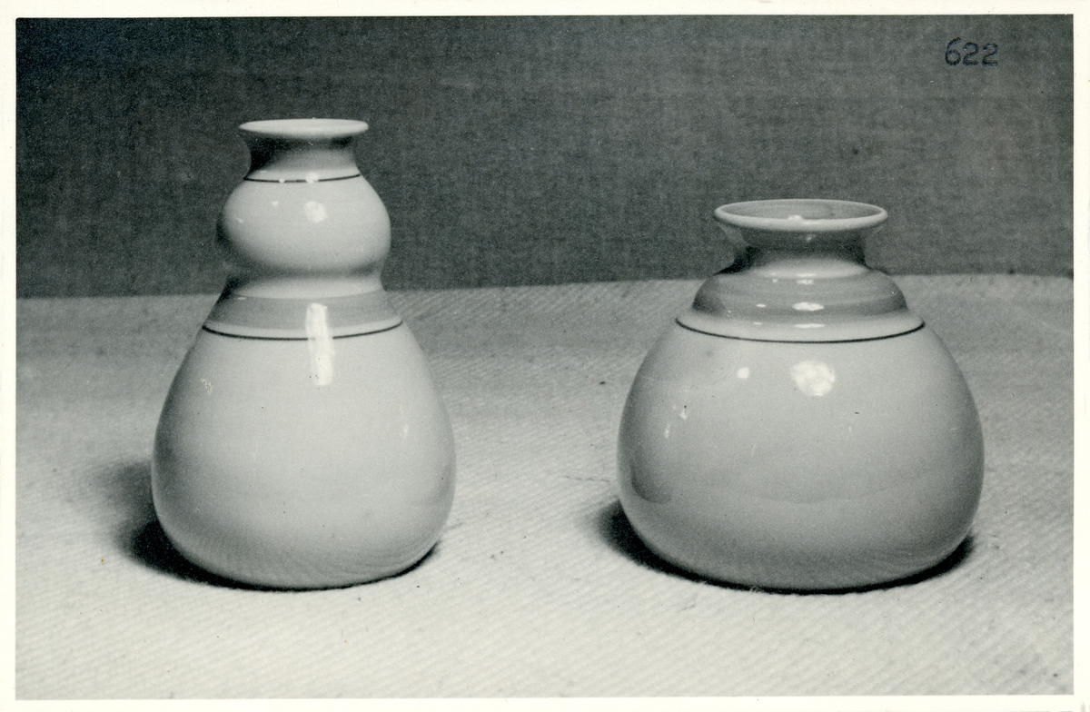 Vaser 7006 och 7001 från Bo Fajans, 1900-talets mitt. Dekorerna "Viva" och "Reseda".