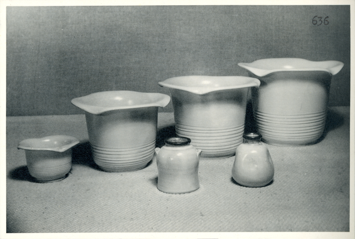 Krukor och vaser från Bo Fajans, formgivare Eva Jancke-Björk, 1900-talets mitt.
