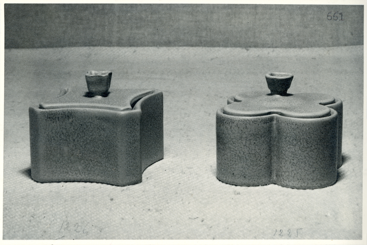 Bonbonjärer 1226 och 1225 från Bo Fajans, formgivare Allan Ebeling, tidigt 1900-tal.