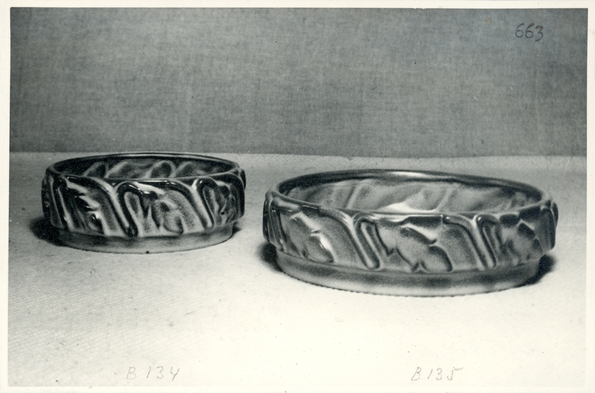 Skålar B134 och B135 från Bo Fajans, formgivare Eva Jancke-Björk, 1900-talets mitt.