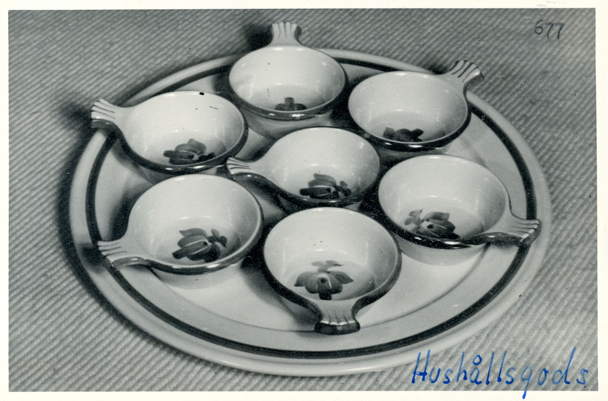 Ungsfast hushållsgods "Termo" från Bo Fajans, 1900-talets mitt. Skålar med serveringsfat, dekor H.