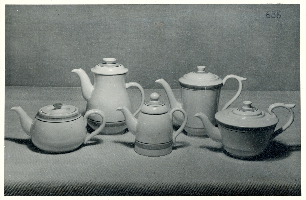 Titel: Ungsfast hushållsgods "Termo" från Bo Fajans, 1900-talets mitt. Kannor, dekor "Viva".