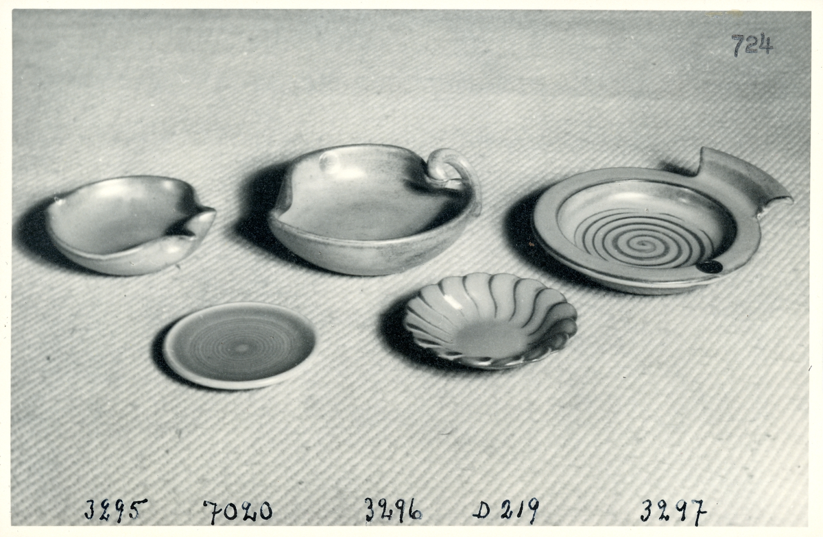 Askfat från Bo Fajans, formgivna acv Eva Jancke-Björk och Ewald Dahlskog, 1900-talets mitt.