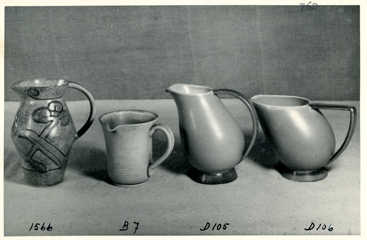 Kannor från Bo Fajans, formgivna av Allan Ebeling, Eva Jancke-Björk och Ewald Dahlskog.