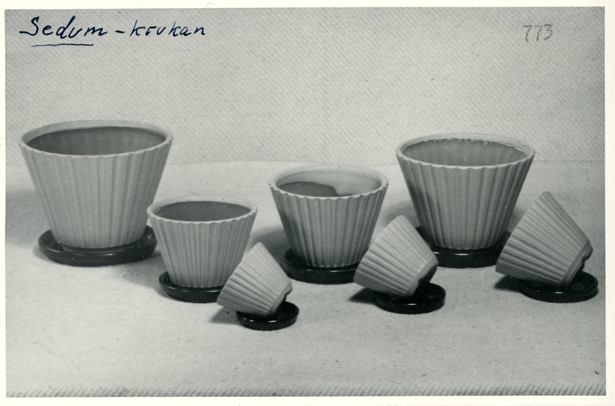 Titel: Sedum-krukan från Bo Fajans, formgivna av Eva Jancke-Björk, 1900-talets mitt.