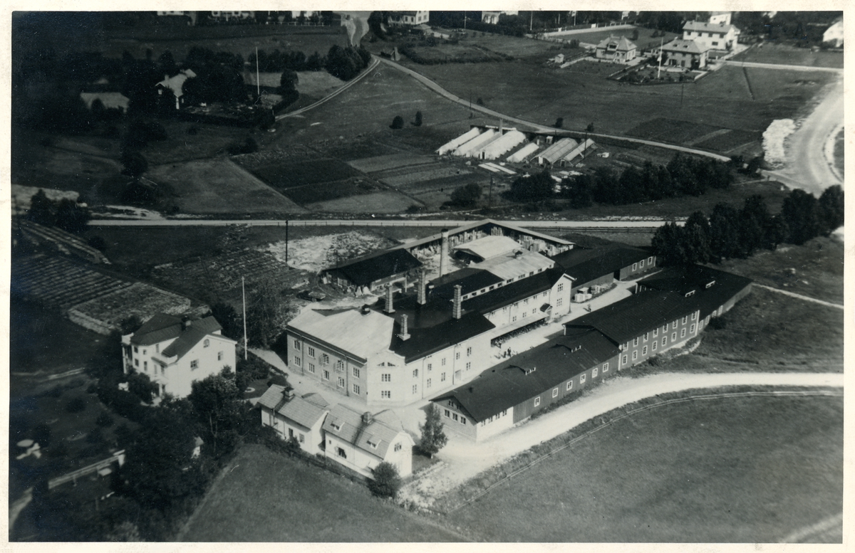Flygfoto på Bo Fajans fabriksområde. Foto taget av Aero Material AB, Stockholm; No: N.1057.