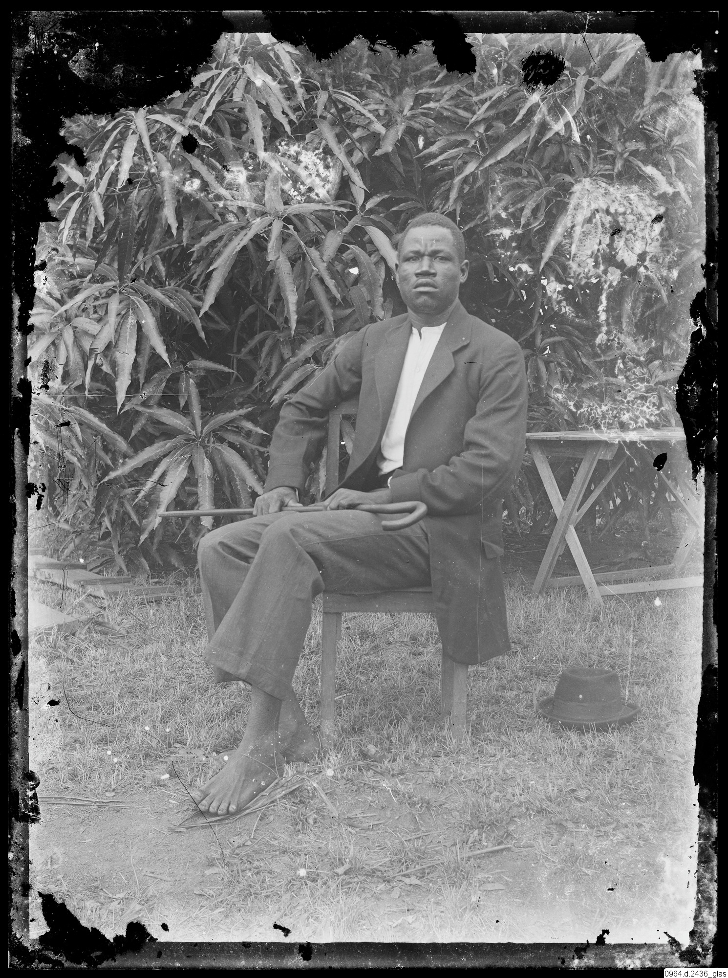 hatt, stol, bord, porträtt, promenadkäpp, man, fotografi, photograph