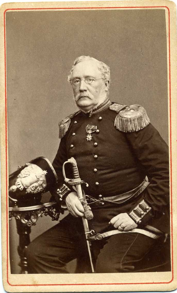 Porträtt av en riksdagsman sittande på en stol. Han bär militär uniform.