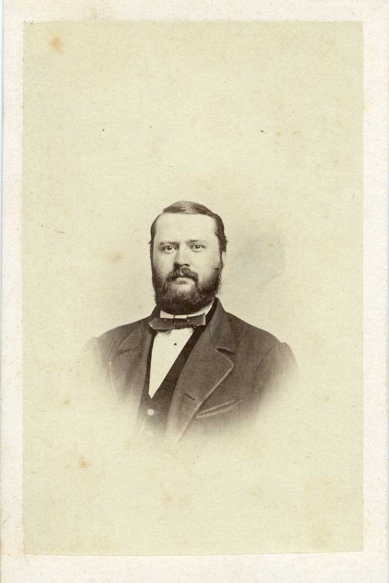 Porträtt av en man, möjligen riksdagsman, bröstbild. Autograf på bildens baksida.