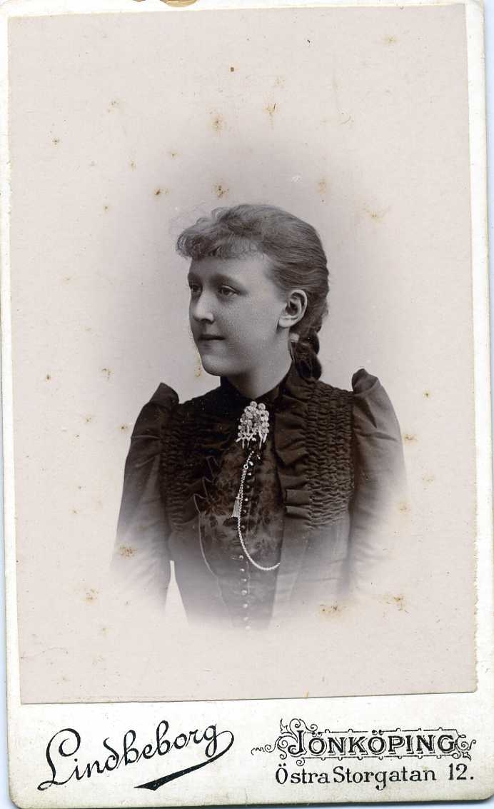 Porträtt av en okänd flicka i tonåren, bröstbild. En brosch vid halsen.