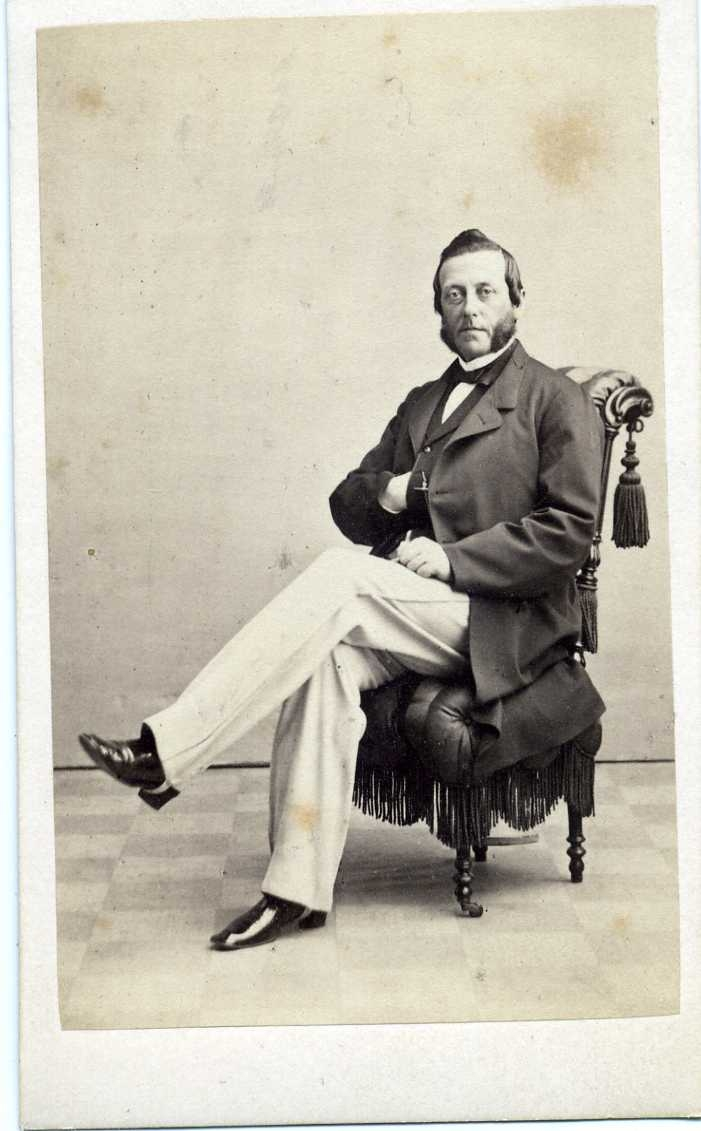 Porträtt av en riksdagsman sittande på en stol i Napoleon-pose.
