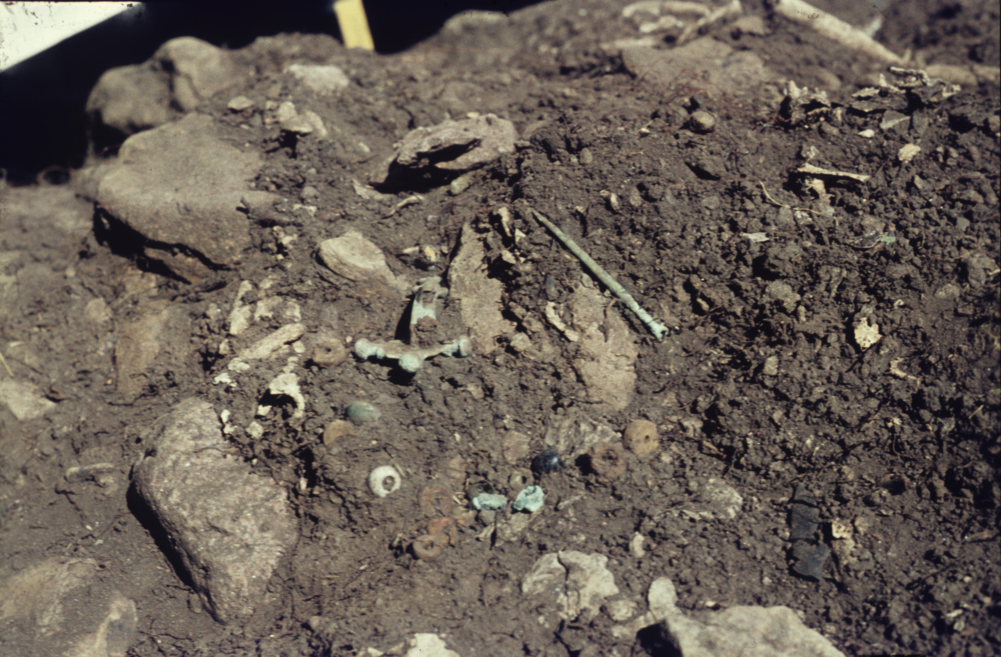 Fornlämning 15D. Från arkeologisk utgrävning 1958-1960 inför anläggandet av Ranstadsverken. Del av smyckesuppsättning.