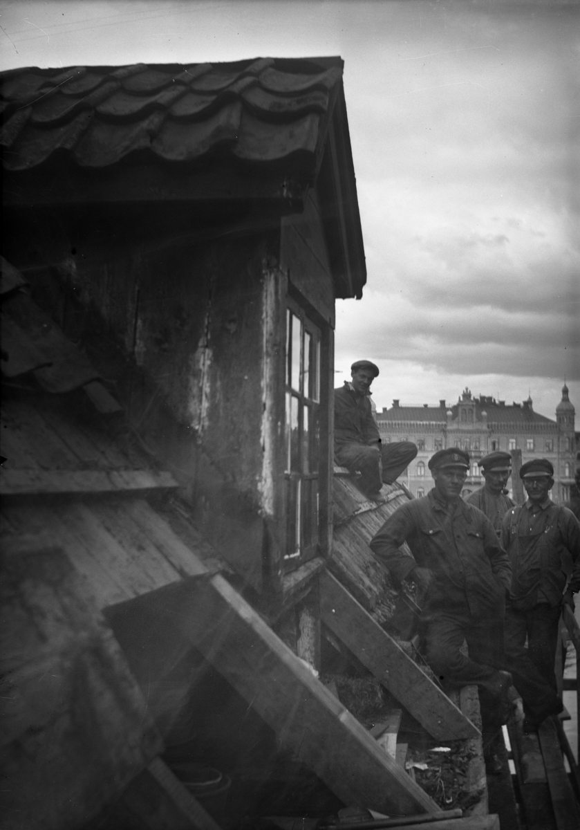 Takarbeten på Älvgatan 7 i kvarteret Almen, Karlstad.