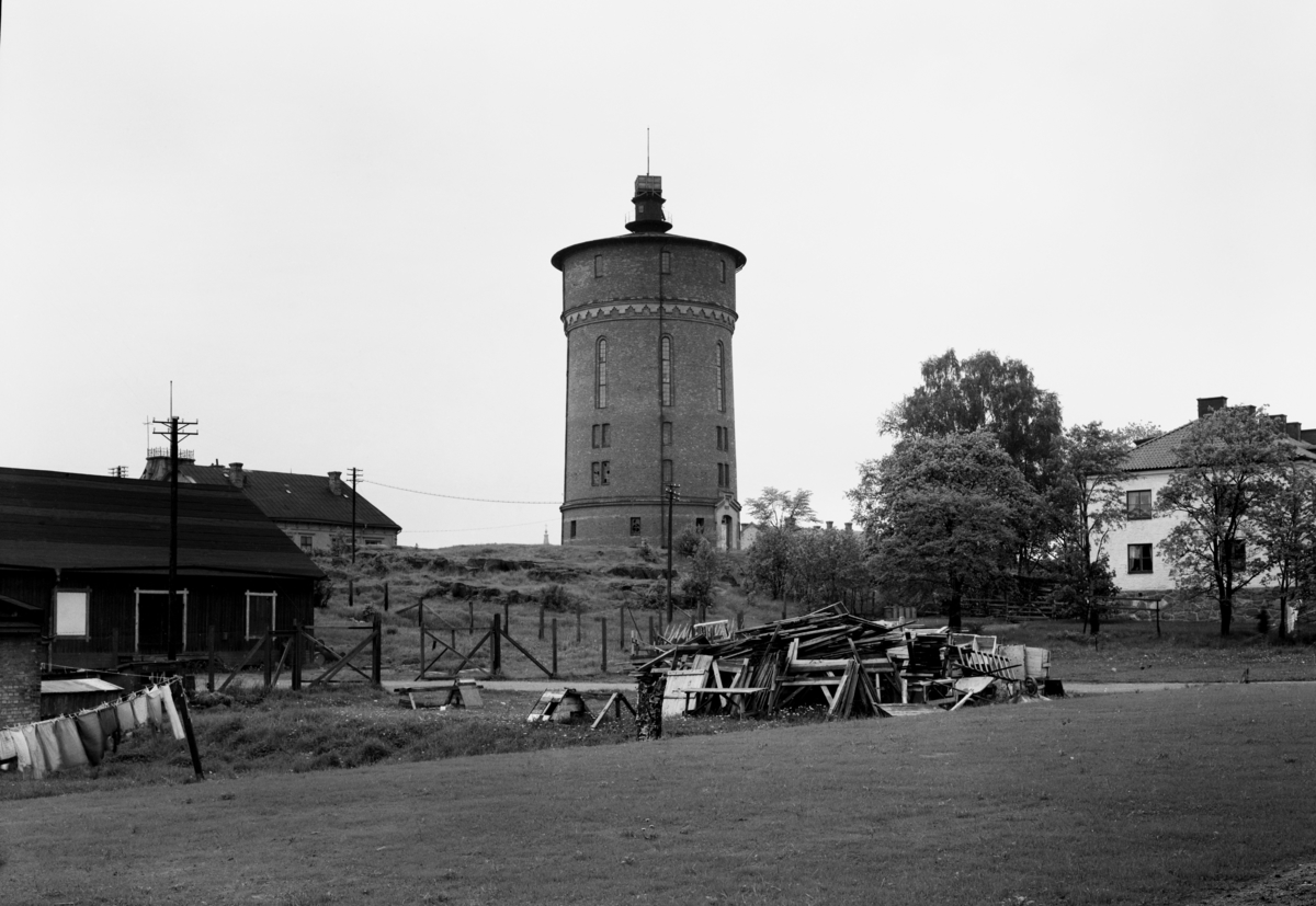 Herrhagens vattentorn byggdes 1889, höjdes år 1904 för att klara vattenförsörjningen till det kommande bygget av Herrhagsskolan, och är numera ombyggt till bostäder. Bilden tagen 1944.