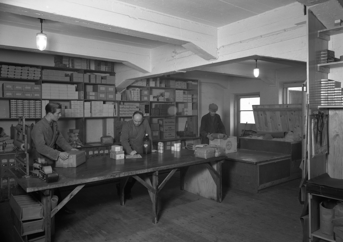 AB Nils Janssons färg med lager och butik på Järnvägsgatan 4 i kvarteret Duvan. Bilden tagen 1945.