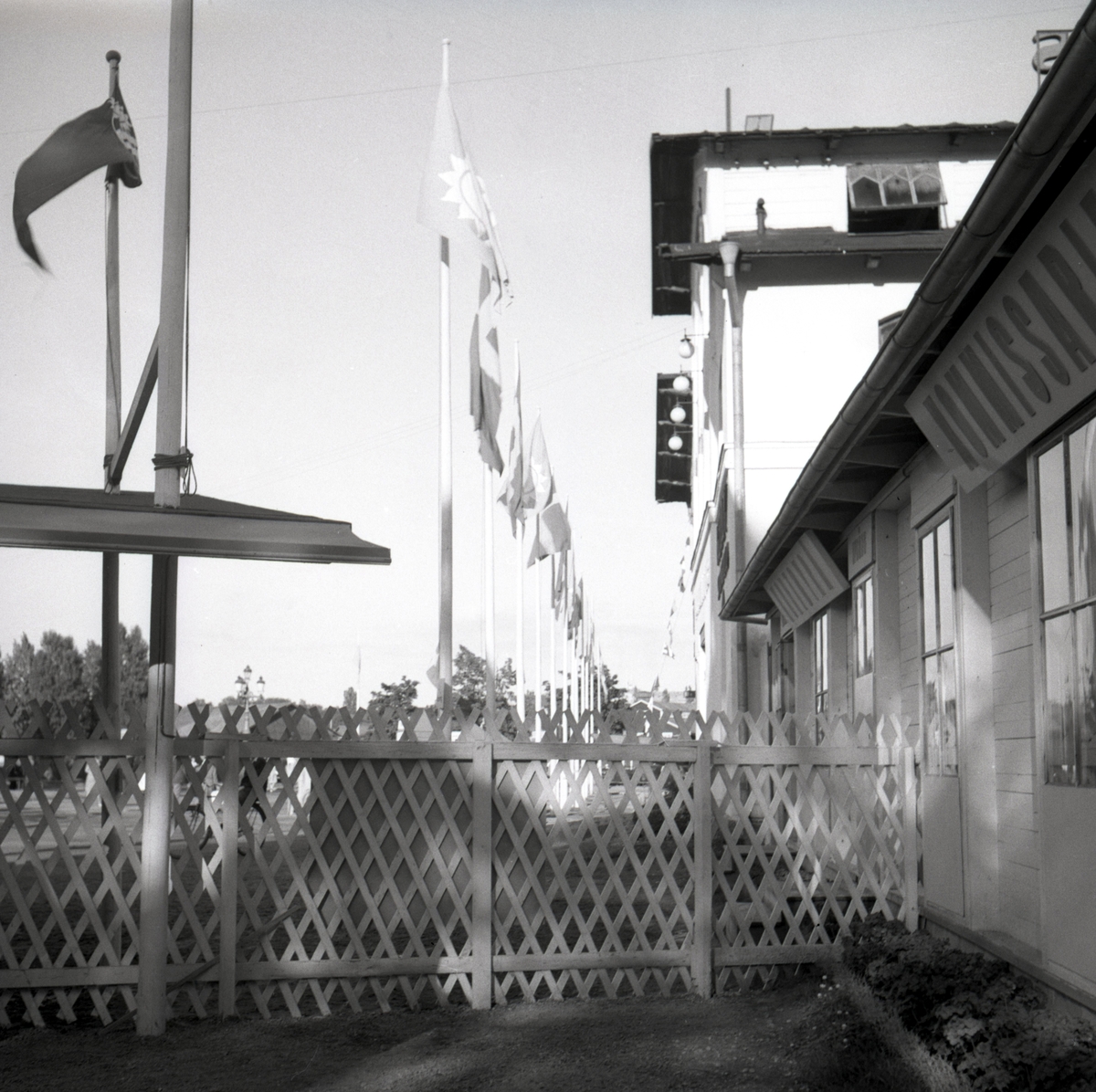 Titel: Bild från utställningen "Värmland Visar" år 1947 i Stadsträdgården. Utställningen invigdes den 19 juni.