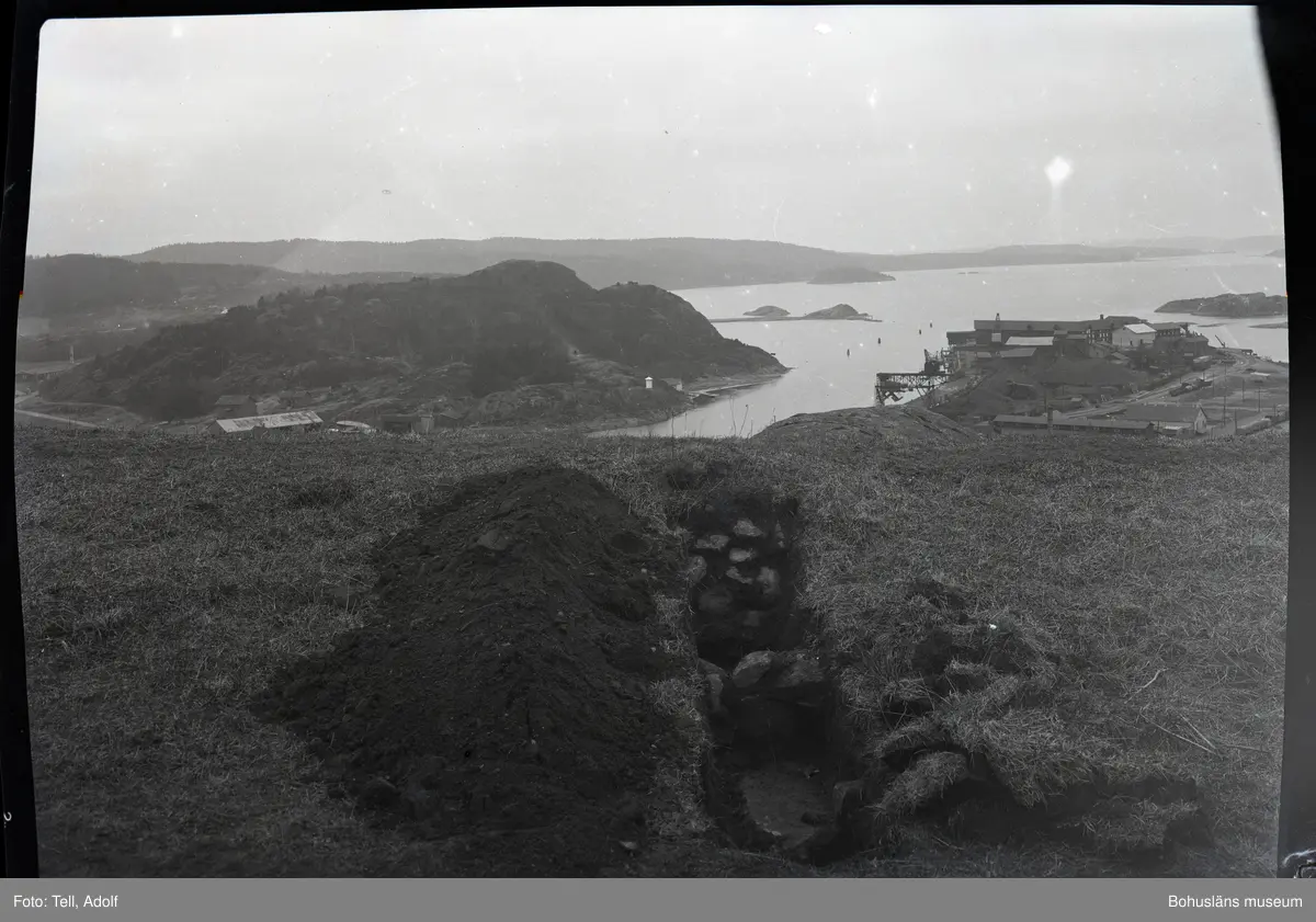 Enligt tidigare notering: Uddevalla. Skärning genom översta vallen. I bakgrunden fjorden.