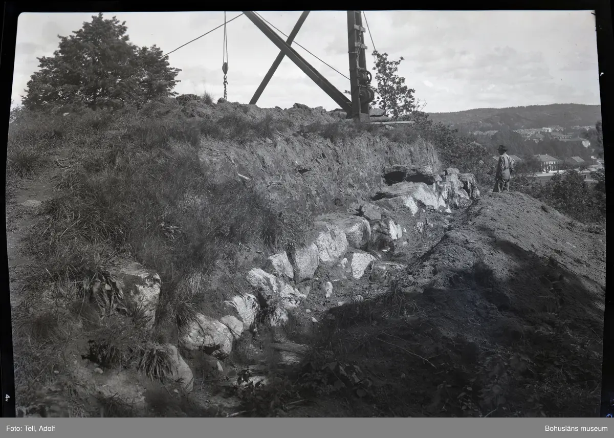 Enligt tidigare notering: Uddevalla 1936 N.Ö, barnverkets västra felank. Från 3,5m. tenajlen mellan flanken och kurtinen mot söder.