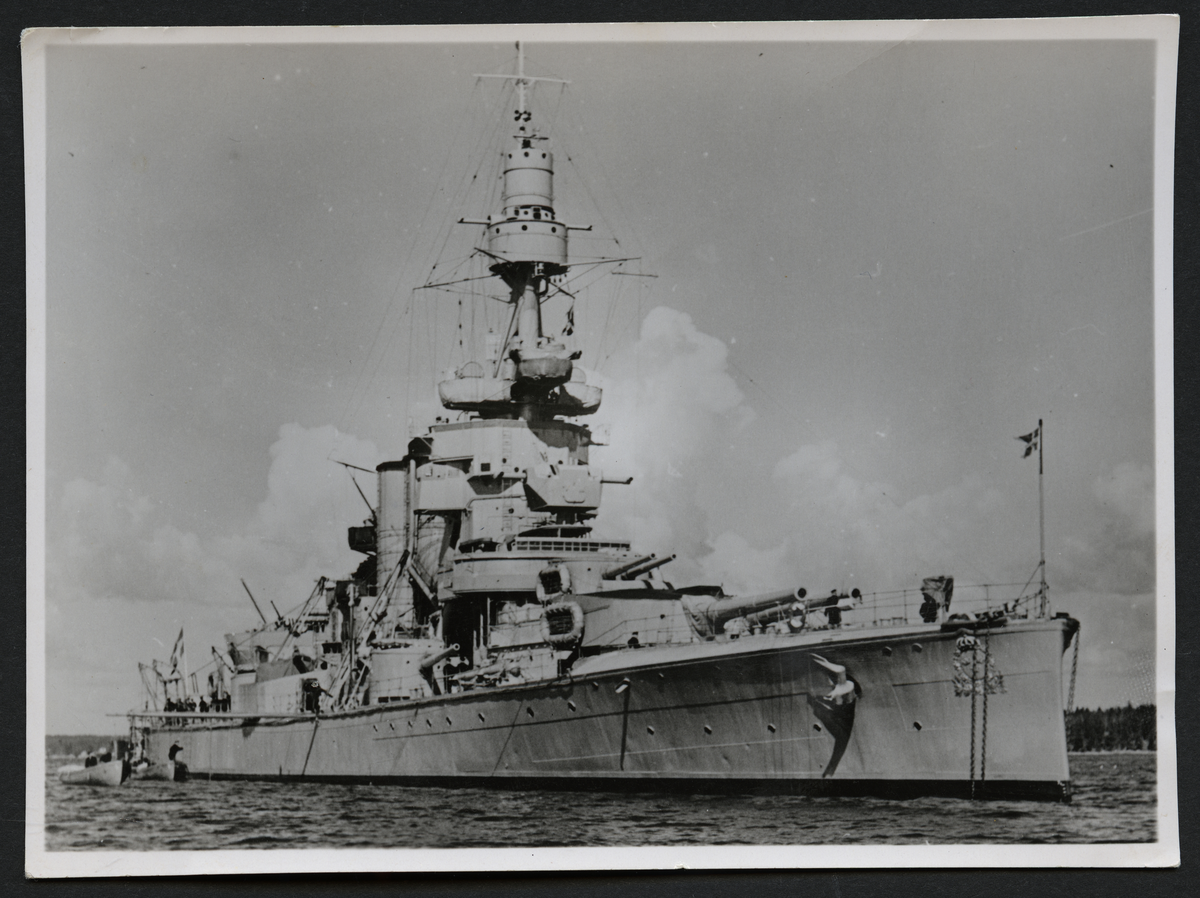 Pansarskepp Sverige till ankars efter ombyggnation.