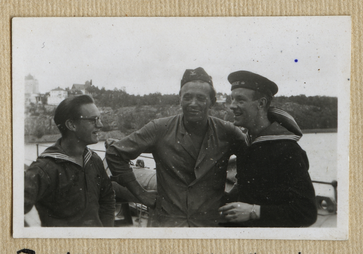Bilden visar "Foto-Anders" med två kamrater på pansarskepp Sverige.