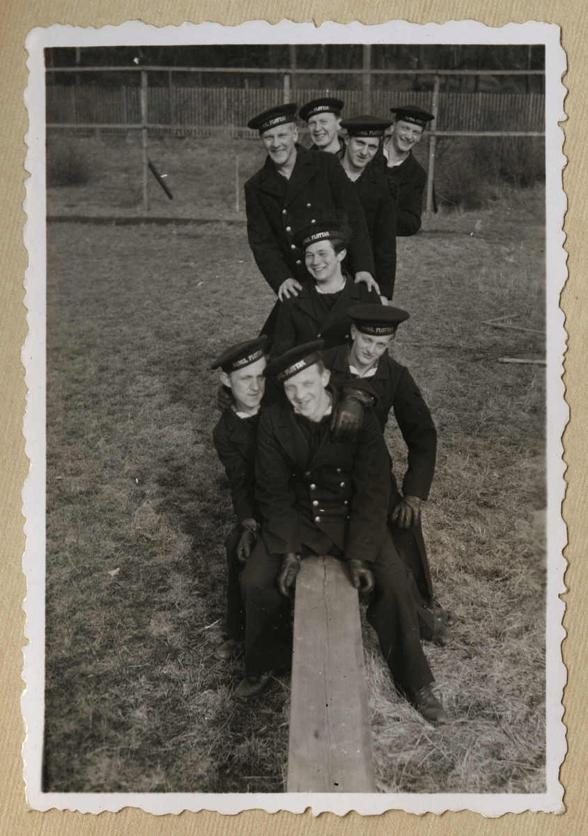 Bilden visar en grupp flottister som sitter på en bjälke.