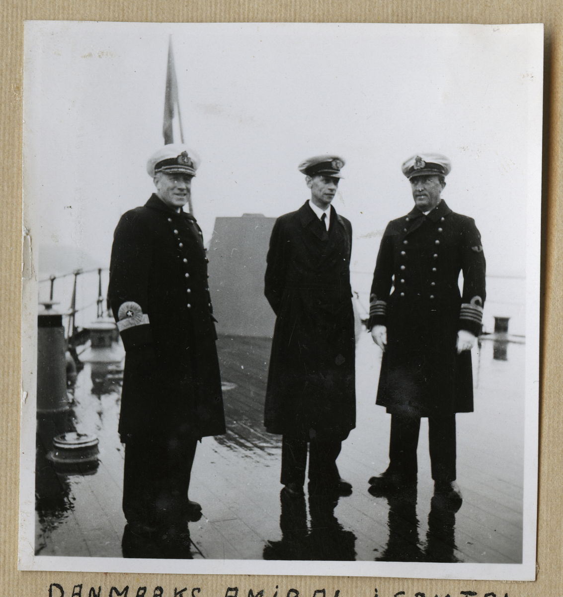 Bilden visar kommendör Samuelsson i samtal med en dansk amiral på pansarskepp Sverige.