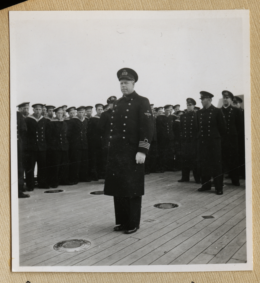 Bilden visar kommendör Hammargren på pansarskepp Sverige.