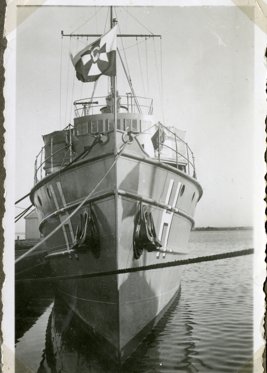 Bilden visar ett utländsörlogsfartyg framifrån.