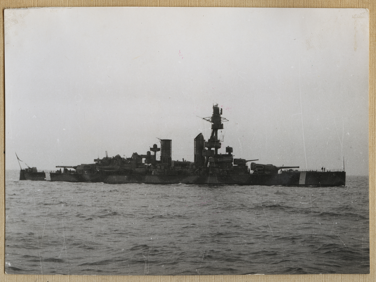 Bilden visar pansarskepp Drottning Victoria till havs.