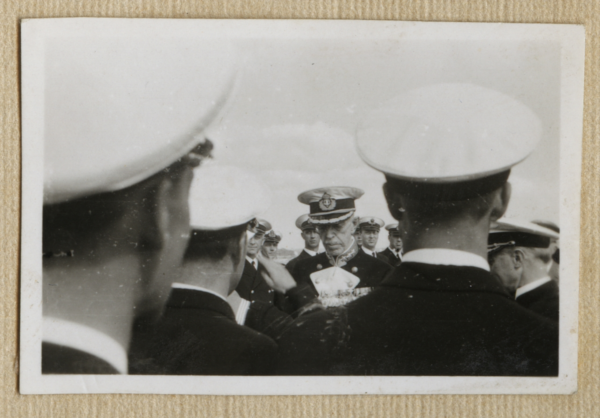 Vilden visar Kung Gustav V ombord på pansarskepp Sverige.