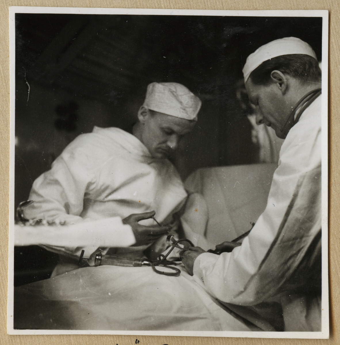 Bilden visar ett kirurgiskt ingrepp ombord på pansarskepp Sverige.