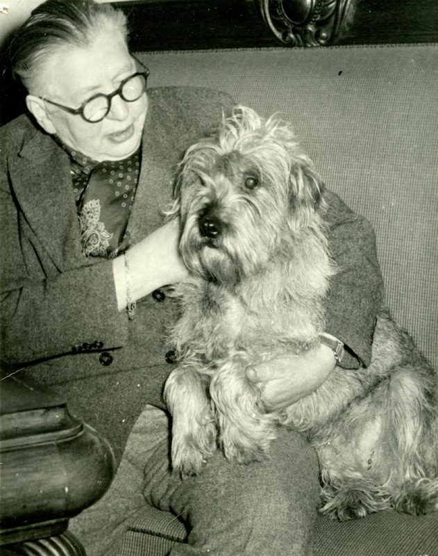 Fotografi, föreställande Astrid Aagesen tillsammans med en hund.