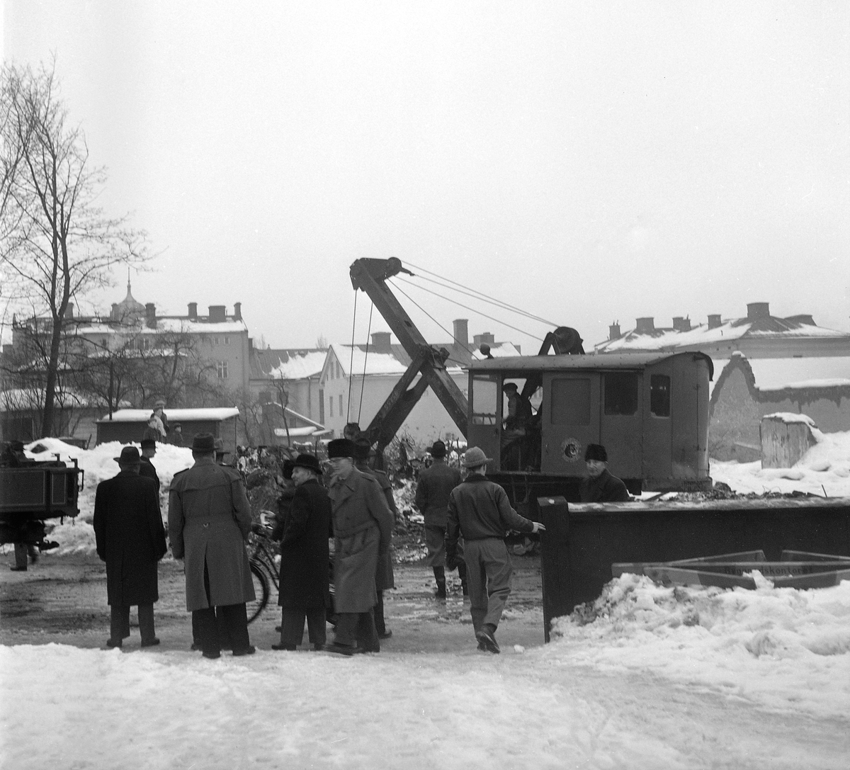 Den så kallade Huifeldtska gården är flyttad till friluftsmuseet Gamla Linköping och schaktningsarbetet för det nya Folkets hus tar sin början. Tiden är några dagar in på året 1951.