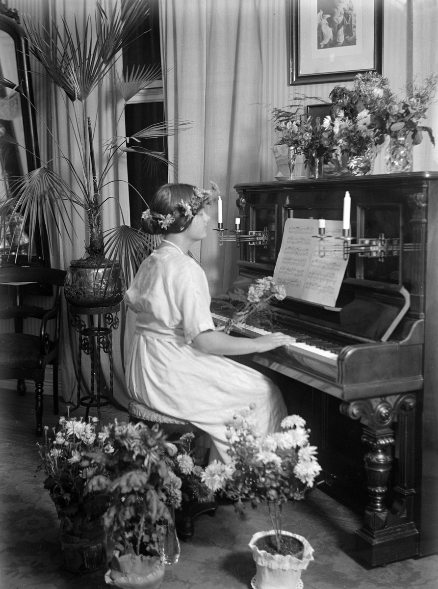 En tidsdoft av borglighet. Lektorsdotter Maria Lindvall fyllde 24 år den här dagen och den fotointresserade fadern förevigade stunden. Som utbildad småskolelärare skulle hon snart lämna barndomshemmet i Kalmar för en yrkesbana i Oskarshamn, Alingsås, Vara och slutligen Linköping.