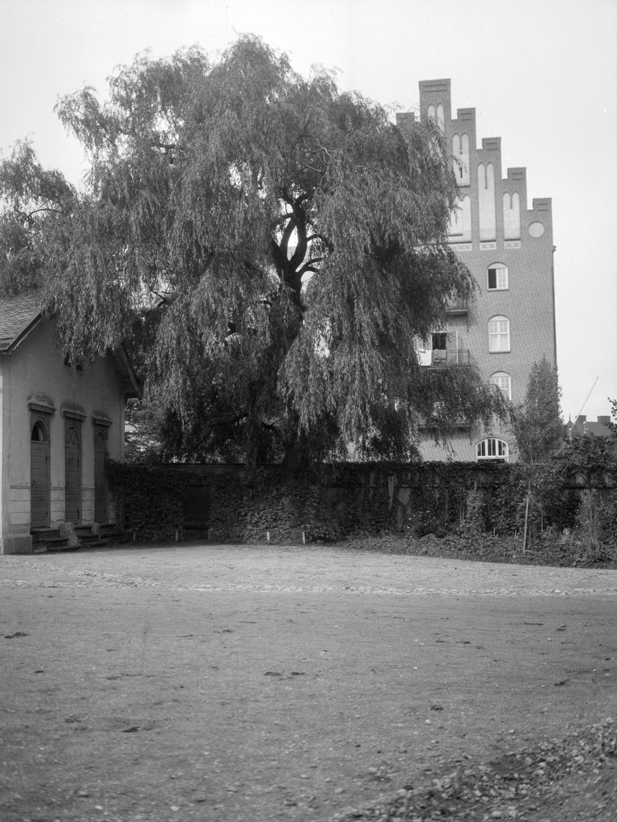 Frimurarehotellets höga gavel placerar den klent beskrivna bilden otvetydigt i Linköping. Den enda möjliga vinkeln placerar fotografen på gården till Ljungstedtska skolan med blicken vänd mot norr. Hotellet stod klart 1912 och fotografiets karaktär i övrigt ger en fototid till omkring 1915-1920. Sannolik fotograf var Lars Fredrik Lovén.