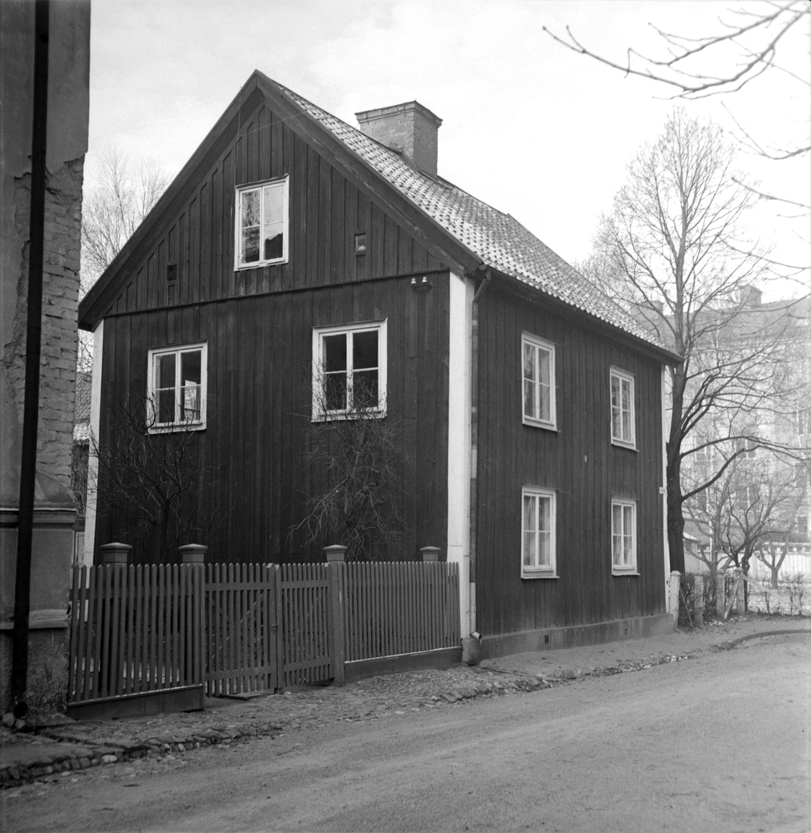 På tomten till dagens Teatergatan 3 (även Kapellgatan 4) i Linköping stod tidigare bildens trähus. Uppförd i slutet av 1800-talet som tjänstebostad för kyrkans personal. Bland dessa kan nämnas likvagnskarlen Johan Wilhelm Petersson. Hösten 1946 köptes fastigheten av industrimannen Malte Månson för sin personal och efter påföljande ägarbyten revs huset för att bereda plats för nuvarande huskomplex. Foto 1946.