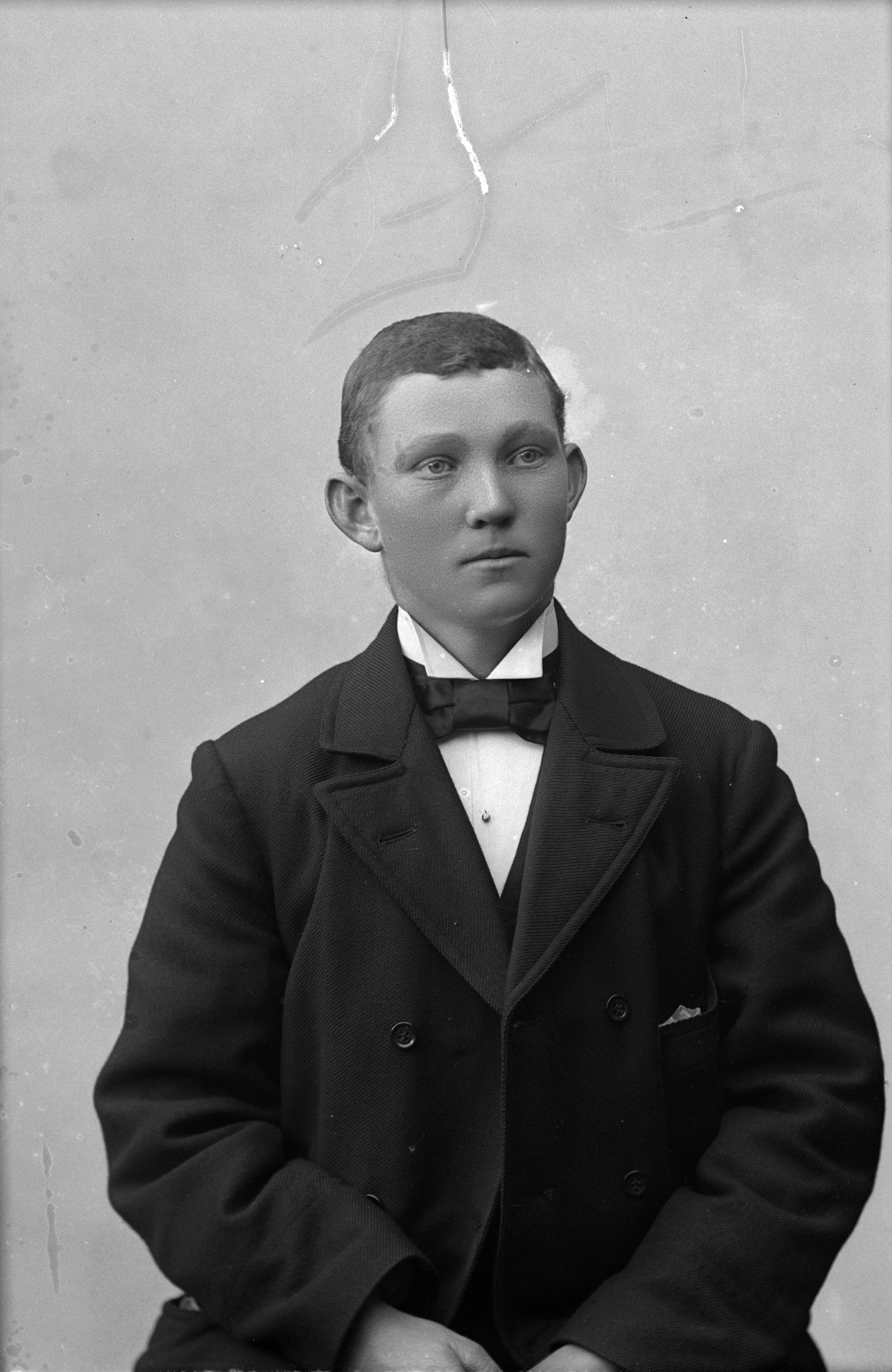Beskrivning: Porträtt i halvfigur av Gustaf Persson.