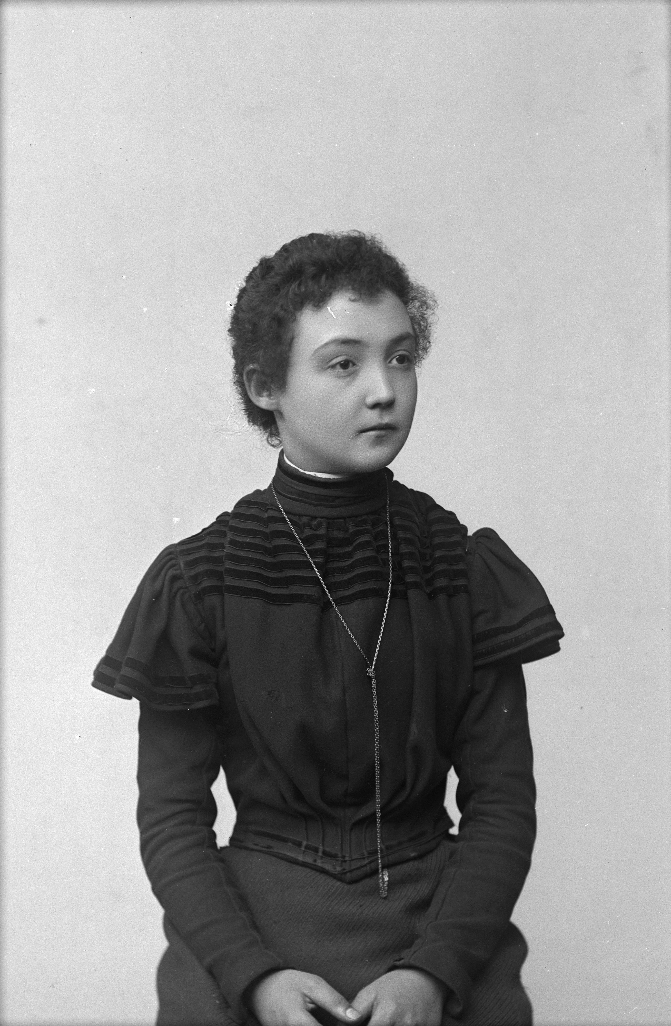 Beskrivning: Porträtt i halvfigur av Ellen Borg /Västergatan.