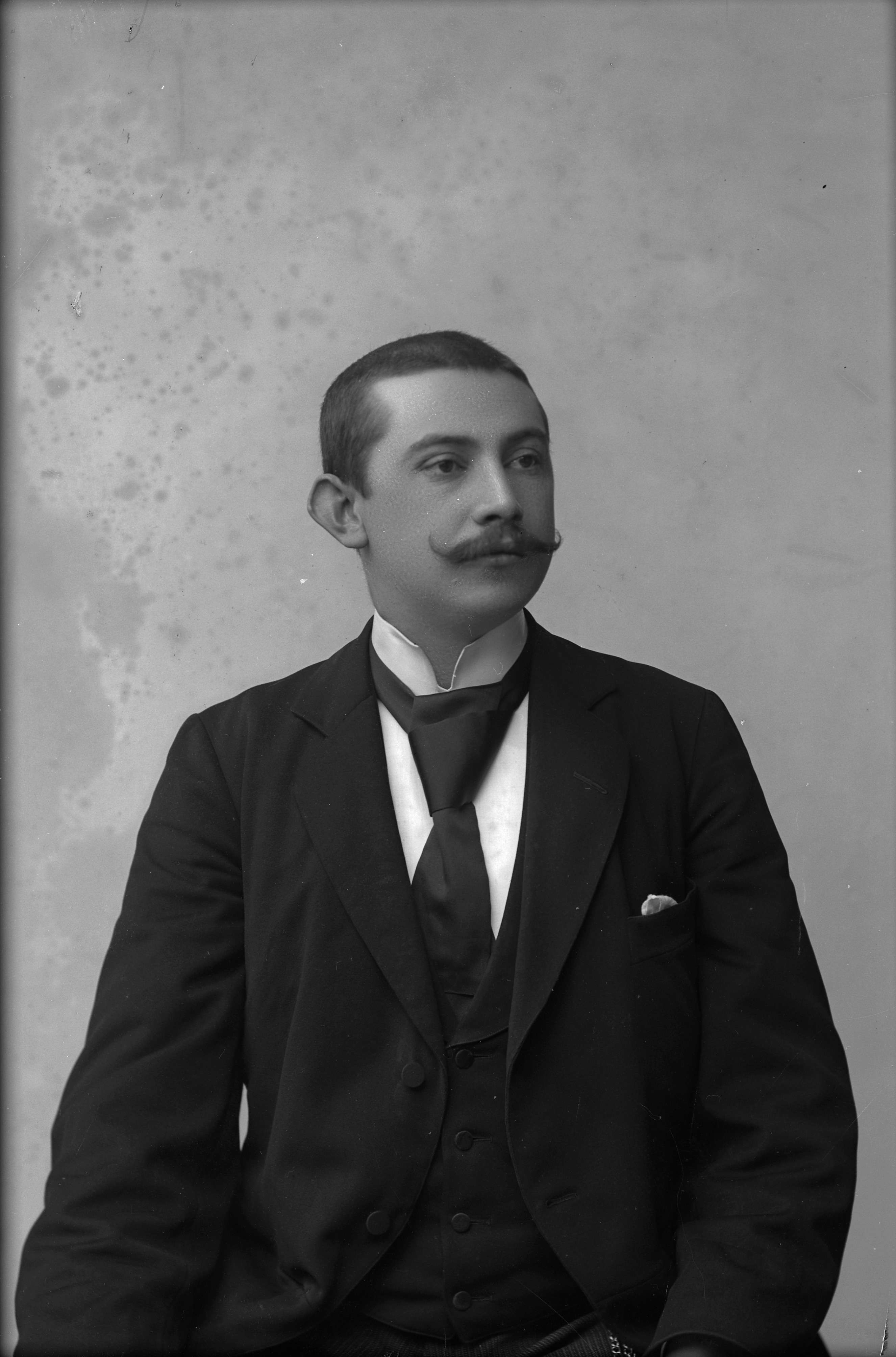 Beskrivning: Porträtt i halvfigur av Gustaf Flygare i Hässleholm.